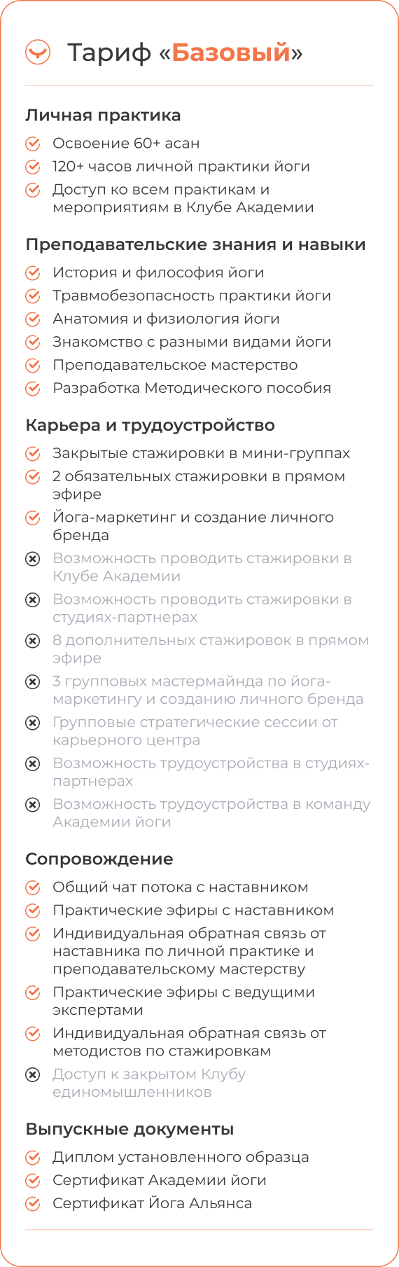 Освоите 24 базовые асаны Хатха-йоги, получите пример последовательностей и составите из них логичные и эффективные последовательности с обратной связью от наставника.
